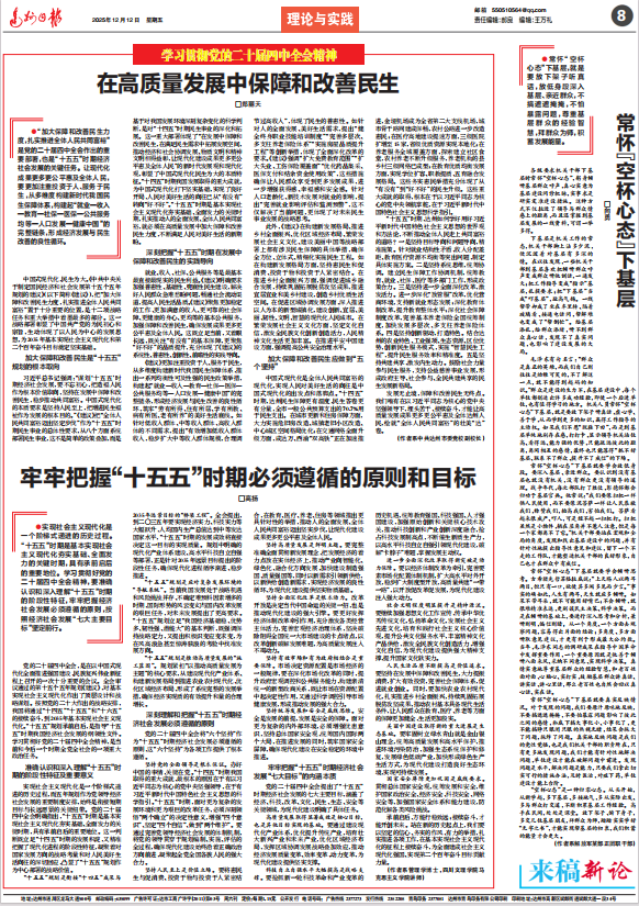 12月12日,达州日报全文刊发我院高扬博士的学习贯彻党的二十届四中全会精神理论文章《牢牢把握“十五五”时期必须遵循的原则和目标》。