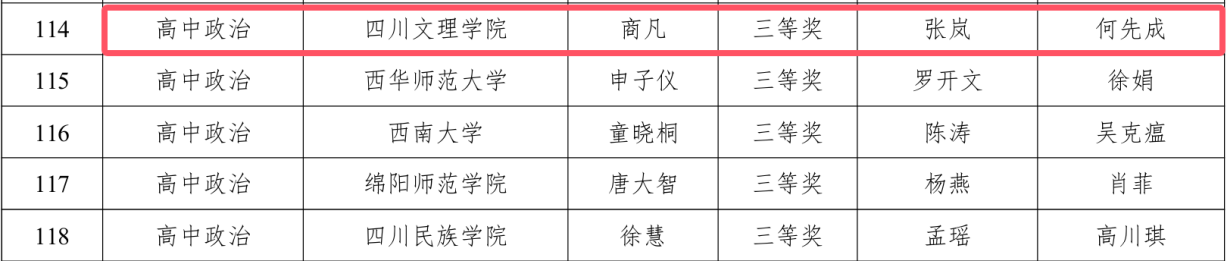 近日,川渝师范生教学能力大赛执委会办公室公示了川渝第四届师范生教学能力大赛拟获奖情况,我院思想政治教育专业2023级学生商凡荣获三等奖。