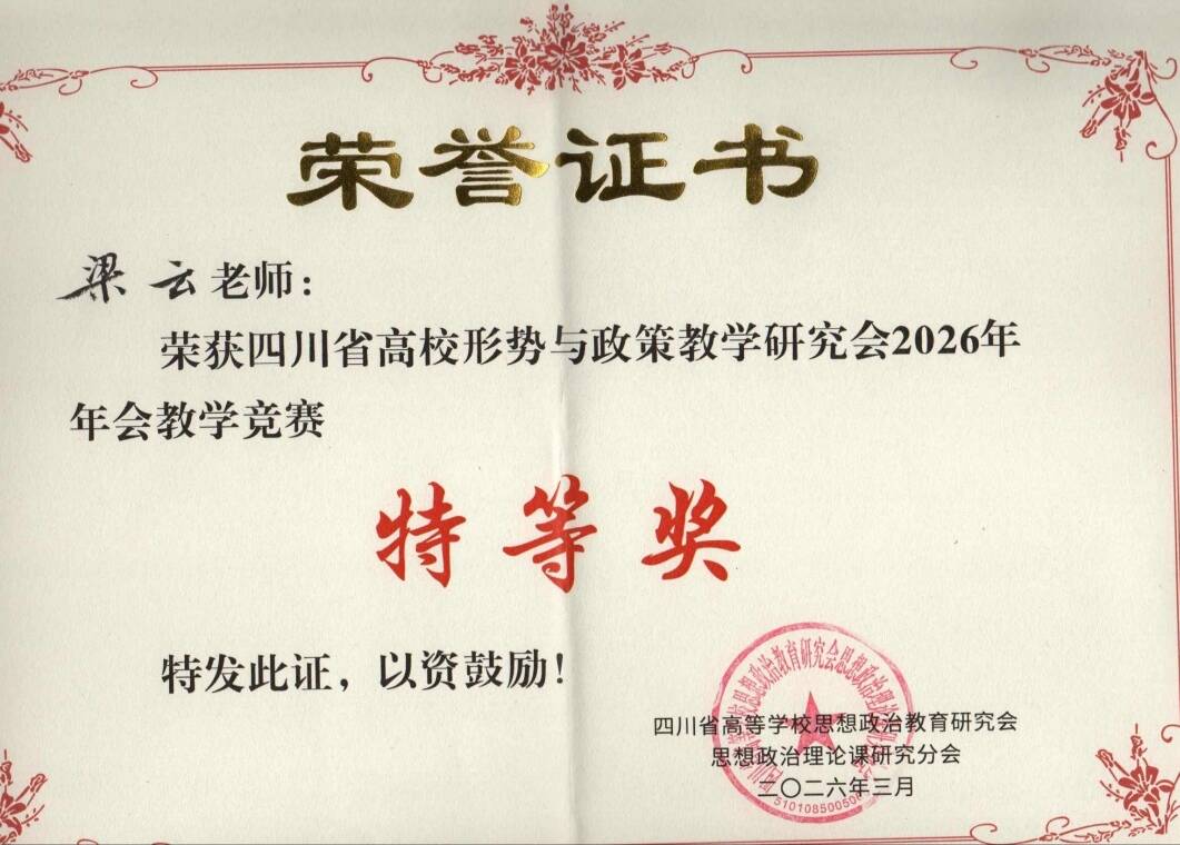 必赢242net官网教师喜获四川省高校形势与政策研究会2026年年会教学竞赛特等奖