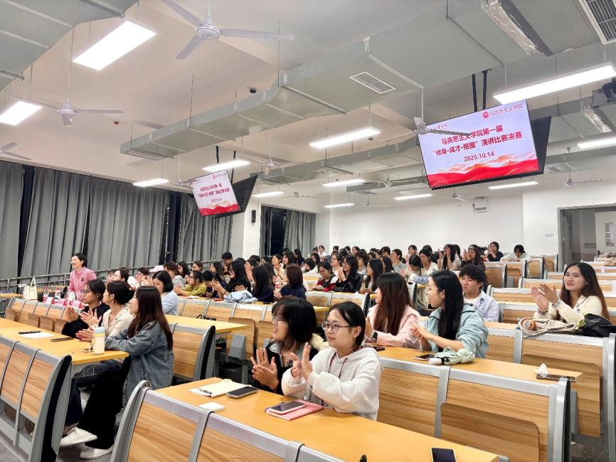 为弘扬修身立德之风,激发学子成才之志,厚植报国情怀,马克思主义学院于2025年10月14日19:00在东区教室A318举办首届“修身·成才·报国”演讲比赛决赛。学院党委副书记周春滟、正处级组织员丁竹、思想政治教育教研室主任曹红梅、专任教师张岚、专职辅导员覃秋霞出席比赛并担任评委,全体大一新生到场聆听比赛。